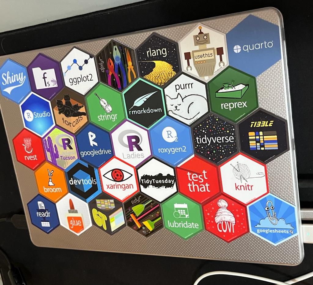 O Quarto, para quem não conhece, é a nova geração do RMarkdown. Eu já venho usando o Quarto desde outubro de 2021, enquanto ele estava sendo desenvolvido e aprimorado. Então poucas coisas foram novidades para mim nas palestras sobre Quarto, mas eu gostei de ver como foi dado ênfase! A keynote ‘Hello Quarto’ da Mine Çetinkaya-Rundel e da Julia Stewart Lowndes foi maravilhosa, com lindas artes da Allison Horst.